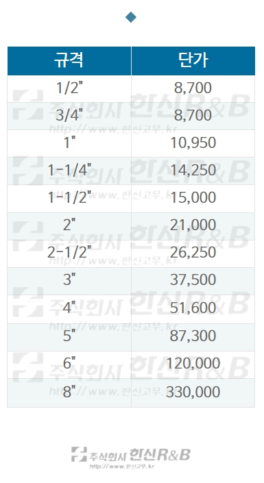 한신 R&B-산업용자재 도매업체(고무,PVC,호스 등)